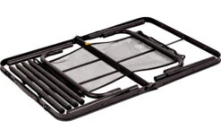 Leichtes Alu-Gestell mit Alu-Rollplatte. Tischbeine sind höhenverstellbar. Lieferung inklusive Packtasche.